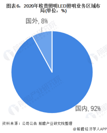 我国LED照明行业随着LED照明技术的不断发展而发展。自1995年国外品牌进入中国后,我国照明技术便开始推广并且快速增长,LED照明企业数量也随之增长。目前我国LED照明行业的龙头企业主要包括欧普照明、阳光照明、佛山照明等。受2020年新冠疫情的影响,欧普照明和阳光照明的营业收入均有所下滑;;从区域分布来看,两家企业均在境内外有布局。