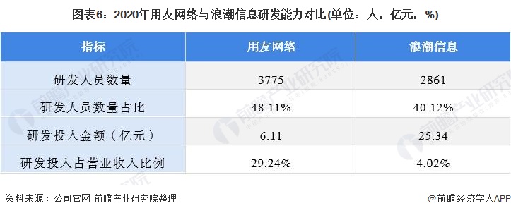从研发能力来看,用友网络在研发人员数量、研发投入金额占营收比重上高于浪潮信息。而浪潮信息研发投入金额高于用友。