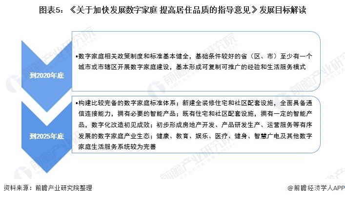《意见》明确指出:到2022年底,数字家庭相关政策制度和标准基本健全,基础条件较好的省(区、市)至少有一个城市或市辖区开展数字家庭建设,基本形成可复制可推广的经验和生活服务模式。到2025年底,构建比较完备的数字家庭标准体系;新建全装修住宅和社区配套设施,全面具备通信连接能力,拥有必要的智能产品;既有住宅和社区配套设施,拥有一定的智能产品,数字化改造初见成效;初步形成房地产开发、产品研发生产、运营服务等有序发展的数字家庭产业生态;健康、教育、娱乐、医疗、健身、智慧广电及其他数字家庭生活服务系统较为完善。