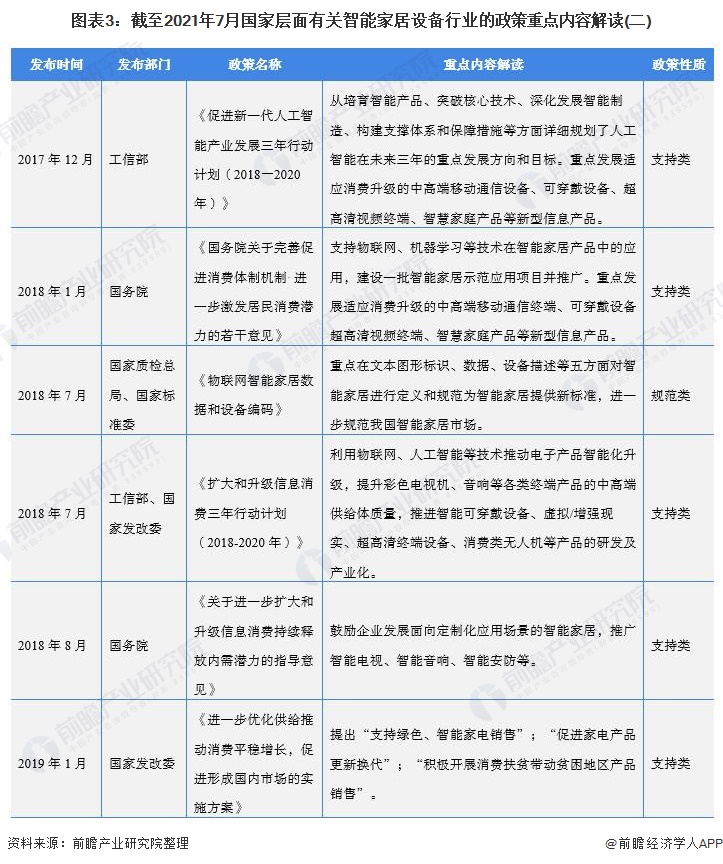 ——国家层面智能家居设备行业政策汇总