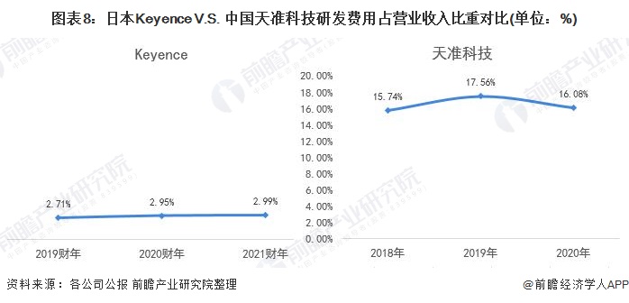 4、研发投入对比:Keyence研发费用规模大,但天准科技研发投入占比高