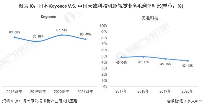 ——机器视觉业务毛利率:Keyence盈利水平远高于天准科技