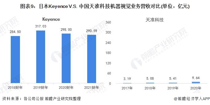 ——机器视觉业务营收:Keyence是天准科技的30倍以上,但天准科技逐渐拉近差距
