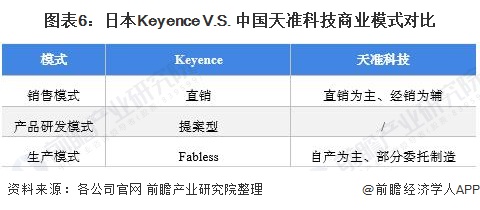 在商业模式上,Keyence坚持采用直销模式进行销售,通过与客户建立双向信息流而更好的了解客户潜在需求,建立产品优势;与此同时,“直销+外包生产”的减少固定资产投资和对经销商的让利,产生高额利润。而天准科技以直销为主、经销为辅,回报相对较低,对于客户需求的了解程度相对较低。