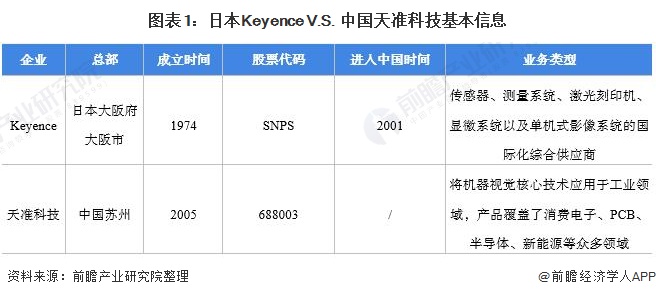 基恩士Keyence是日本机器视觉龙头企业,而天准科技是中国机器视觉龙头企业。