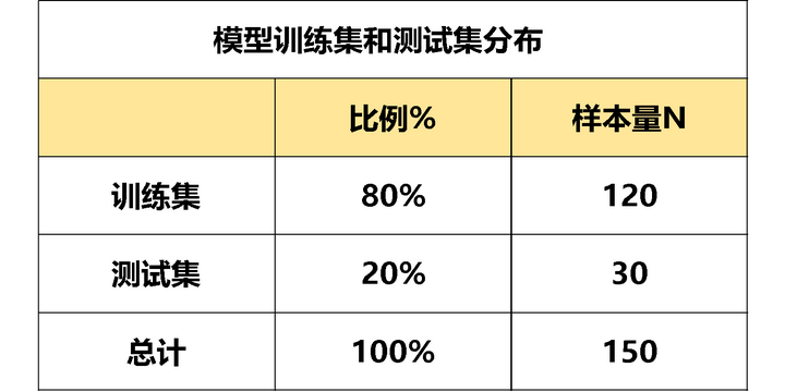 上表是对训练集和测试集整体数据分布的说明,包括样本量、样本比例。