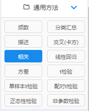 (1)点击SPSSAU通用方法里面的‘相关’。如下图: