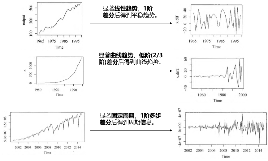图3:不同非平稳时序的差分方法选择