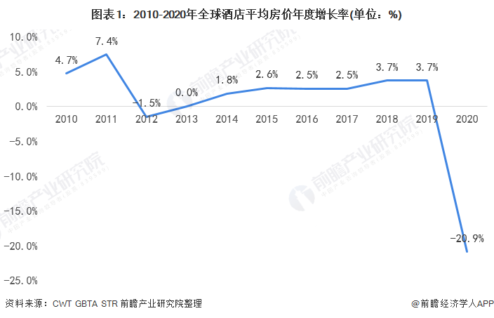 随着经济增长,无论是旅游规模还是商旅规模都在稳步增长,酒店业也在不断发展着。而根据Carlson Wagonlit Travel(CWT)和全球商务旅行协会(GBTA)发布的数据估算,2019年强劲的全球经济和油价上涨推高了2019年的航空旅行成本。同时由于航空旅行成本增加,酒店房价上涨3.7%,亚洲和欧洲的房价上涨5%以上,北美上涨2.1%,拉美下降1.3%。经STR数据显示,受2020年全球新冠疫情的影响,全球平均房价下降20.9%。但随着疫情影响的逐渐减弱,预计2021年将有所回升。对于精品酒店而言,房价的回升将推动该行业的发展。