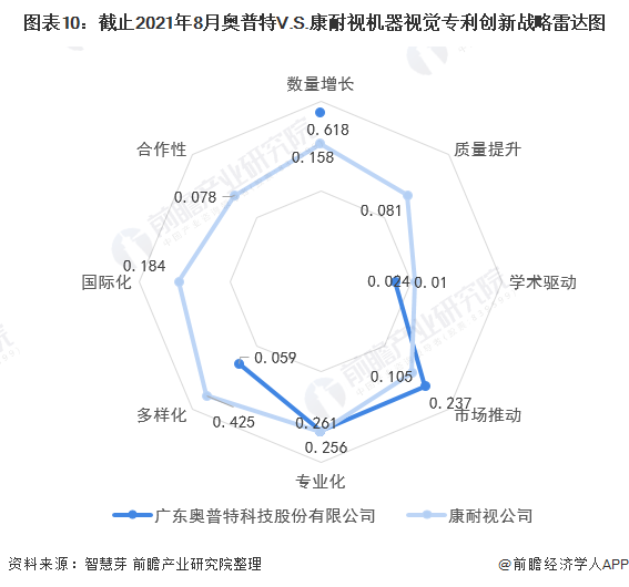 整体来看,奥普特机器视觉技术在数量增长、市场推动具有相对竞争优势,康耐视机器视觉技术则在专业化、多样化、国际化、合作性、质量提升、学术驱动上具有相对竞争优势。