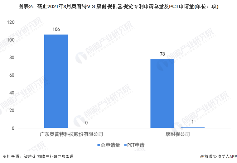 不过,在机器视觉专利申请量方面,奥普特机器视觉专利申请总量较康耐视看机器视觉专利申请量多,分别为106项和78项。