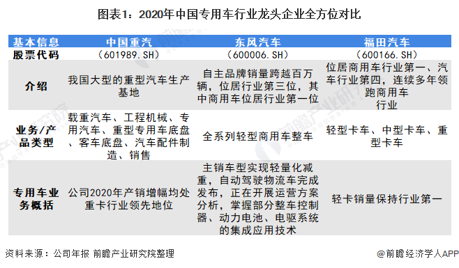 1、中国专用车行业龙头企业全方位对比