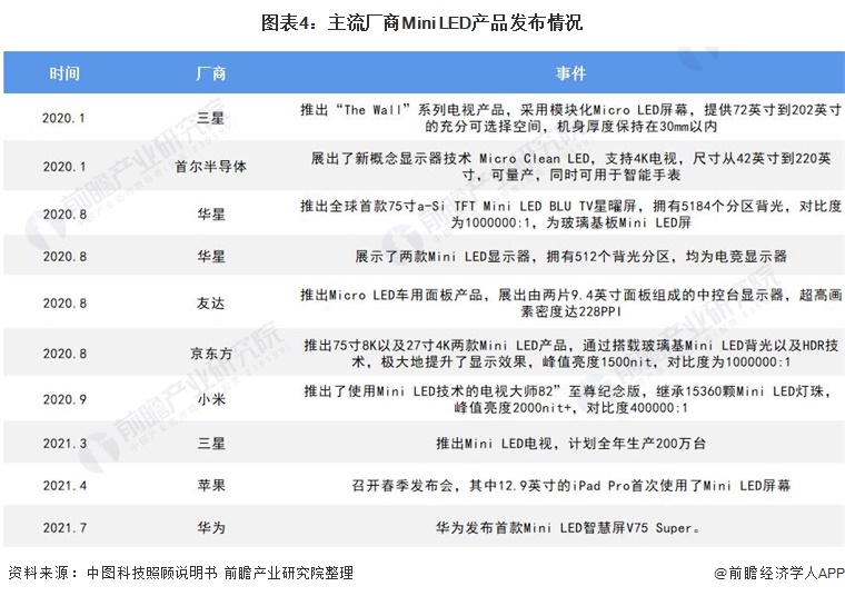 近年来随着Mini LED商用化提速,各大厂商包括三星、首尔半导体、华星、友达、京东方、小米、苹果、华为等纷纷推出了Mini LED产品,从而带动上游Mini LED芯片需求快速提升。此外,上游LED芯片厂商也在积极向Mini LED等中高端产品扩产。随着产业链上下游企业加速布局Mini LED,Mini LED成为推动LED芯片行业增长的重要一环。