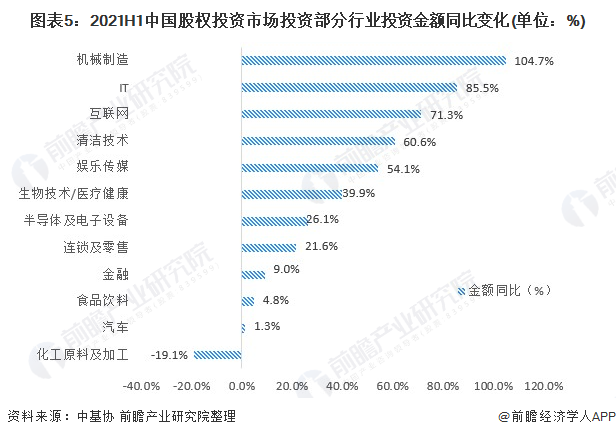 投资金额增速来看,机械制造、IT、互联网同比增速均在70%以上,其中机械制造同比增速更是超过100%。