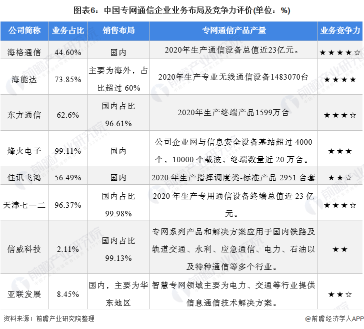 4、中国专网通信行业企业布局及竞争力评价