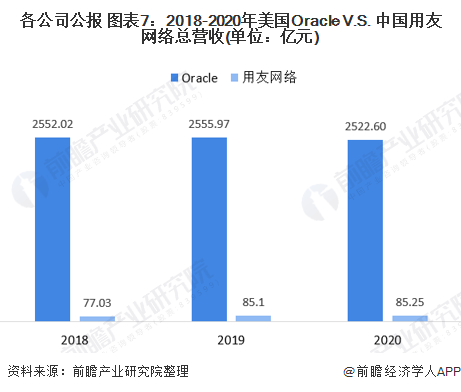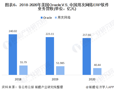 业绩对比:Oracle的ERP软件业务是用友网络的5倍左右