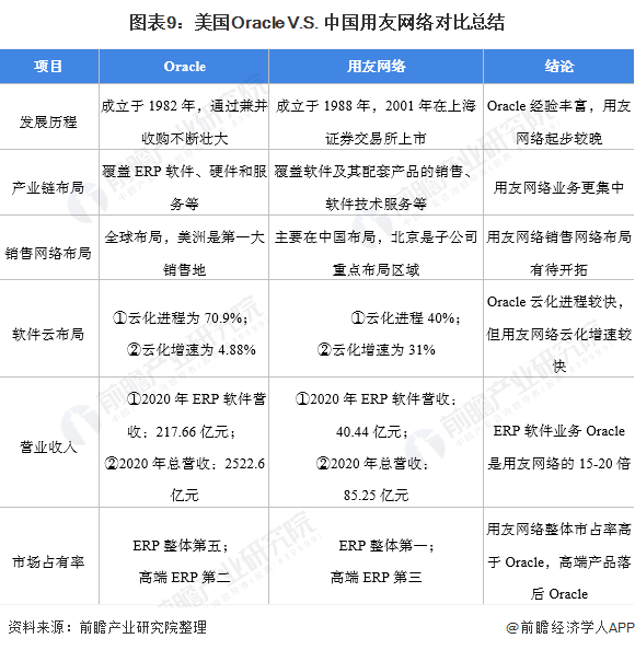 美国Oracle V.S. 中国用友网络对比总结