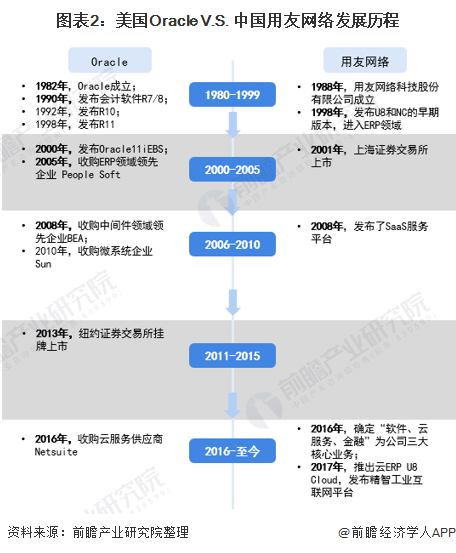 本文核心数据:Oracle和用友网络发展历程、产品布局、财务数据、ERP软件市场竞争格局