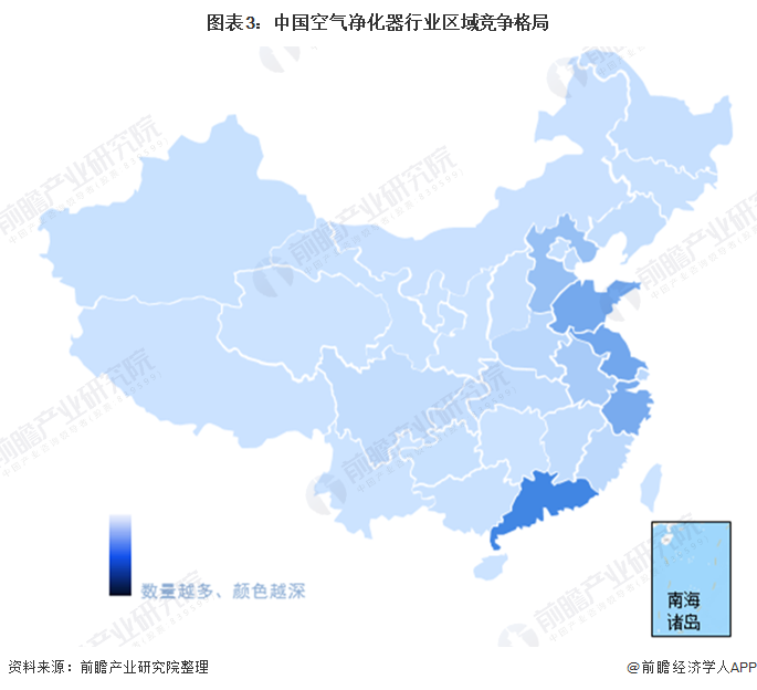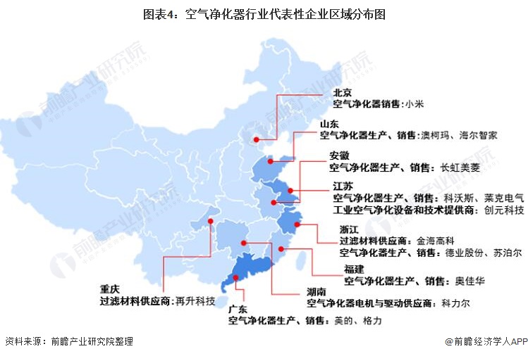 空气净化器行业产业链区域热力地图:企业集中于广东、长三角等地区