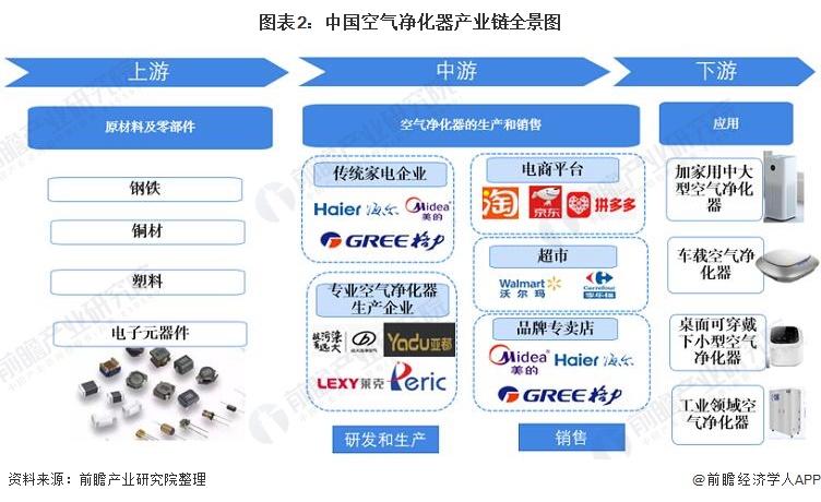 因此空气净化器行业的上游行业为钢材、铜、电子元器件、塑料等原辅材料供应商,行业对上述原辅材料的价格变动较为敏感。空气净化器产品属于消费性产品,其下游为各级经销商和最终用户。因此,人们生活水平的高低和消费习惯将影响产品的最终销售。