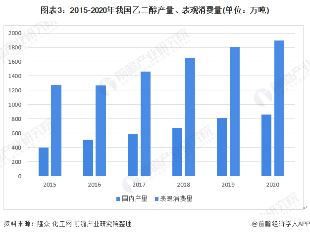 本文核心数据:乙二醇产量、乙二醇表观消费量