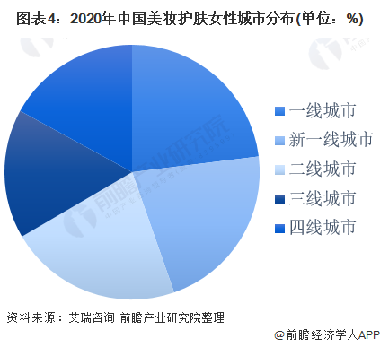 在美妆护肤用户的城市分布方面,美妆护肤用户的城市分布较为均衡,其中,一线城市的用户占比最大,为23%,二线城市和新一线城市占比相当,分别为21.9%和21.6%。