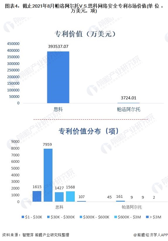 本文核心数据:帕洛阿尔托(Palo Alto Networks)和思科(Cisco)专利申请数量、专利市场价值、专利合作申请、重点专利布局