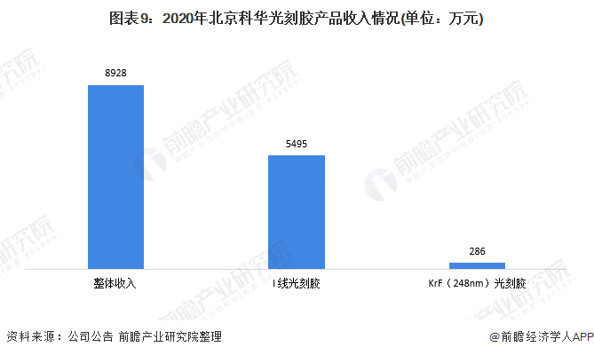 此外,在本土企业中,北京科华是唯一被Semicon列入全球光刻胶八强的中国光刻胶公司,2020年北京科华光刻胶销售8928万元,是中国销售额最高的光刻胶公司。其中,公司的i线光刻胶产品销售额5495万元,占中国i线光刻胶销售额的16.7%;KrF(248nm)光刻胶销售286万元,是唯一可以批量供应KrF光刻胶给8寸和12寸客户的本土光刻胶公司。