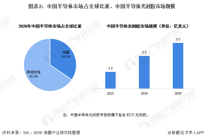 当前,中国已是全球最大半导体消费国家,2020年市场规模占全球比重为34.5%,光刻胶作为半导体制造的核心材料之一,对半导体光刻胶的需求也不断增长。据美国半导体协会的数据显示,在此之中中国半导体光刻胶市场从2015年的1.3亿美元增长至2020年的3.5亿美元,同比增长约为40%。