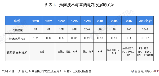 1、半导体光刻胶随集成电路线宽的缩小而演变