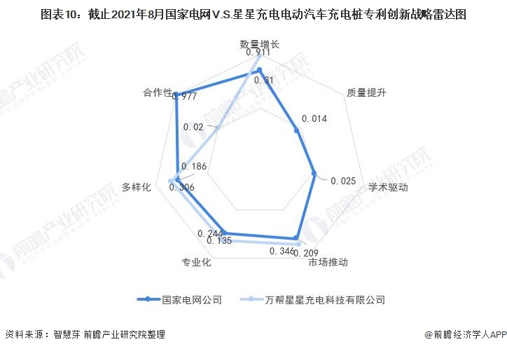 整体来看,星星充电电动汽车充电桩技术在数量增长、市场推动、专业化、多样化上具有相对竞争优势,国家电网电动汽车充电桩技术则在质量提升、学术驱动、合作性上具有相对竞争优势。