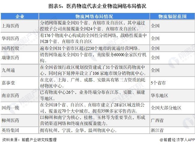 目前,我国医药物流企业纷纷在全国范围内布局,完善物流配送网络。其中,上海医药、华润医药、国药控股、瑞康医药、九州通的物流配送网络基本辐射全国大部分地区,行业竞争优势明显。