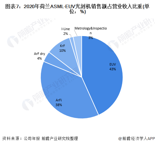 从不同光刻机的销售比重来看,2020年,EUV光刻机的销售额占比达43%,已成为公司第一大销售产品。