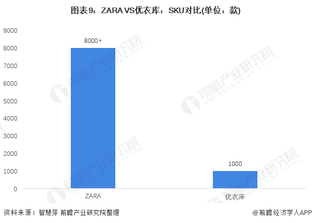 Inditex 集团旗下最大品牌ZARA的SKU达到8000+,而迅销集团旗下规模最大的品牌——优衣库的SKU常年保持在1000款左右,相较于ZARA,其SKU数相对更少,因而库存压力较小,有助于存货周转率保持比较良性的状态;尽管SKU数不多,但优衣库对每一款衣服都进行了深度开发,每个SKU不仅分圆领、方领,往往还有4、5种颜色。