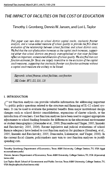 [文献] The Adequacy of Educational Cost Functions: Lessons from Texas. Peabody Jour |