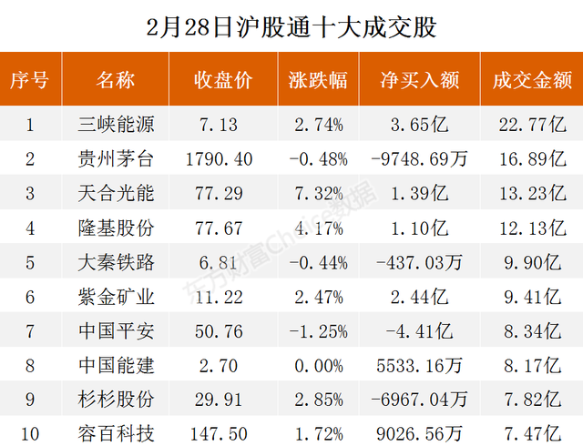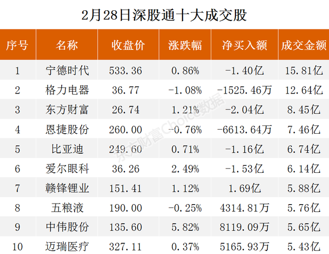 2月28日,北向资金当日成交净买额为20.47亿元。其中,沪股通当日成交净买额为17.08亿元;深股通当日成交净买额为3.39亿元。