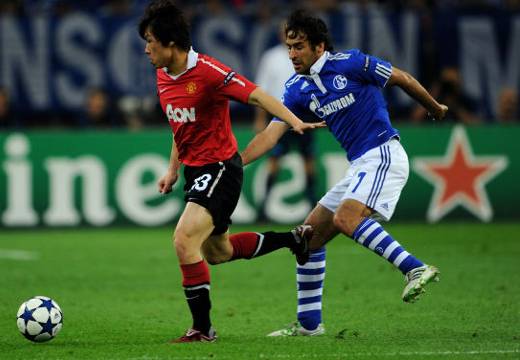 劳尔再次出现在欧冠半决赛的赛场上,身上再也不是白色的皇马球衣。但是,他还是能创造奇迹的。这也是我们80后球迷仅存不多的记忆了吧。可惜的是,实力悬殊,凭借吉格斯和鲁尼的进球,曼联客场2-0击败沙尔克。曼联离温布利原来越近~吉格斯也刷新了欧冠进球年龄纪录。可惜的是劳尔没有能在进球~哎,我还穿着我的劳尔球衣……伯纳乌王子,加油!