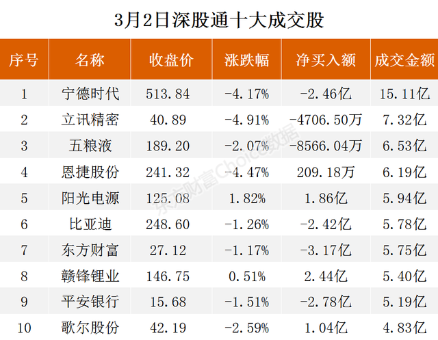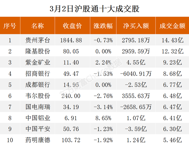 3月2日,北向资金当日成交净买额为-7.76亿元。其中,沪股通当日成交净买额为-4.51亿元;深股通当日成交净买额为-3.25亿元。