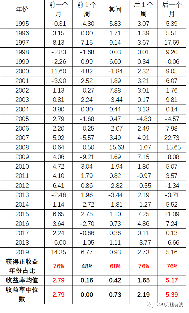 1995-2019共25年两会前后和会议期间的上证指数及各行业板块涨跌幅整理如下表。