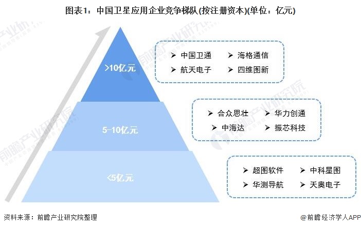 我国卫星应用行业企业可按注册资本分为三个竞争梯队:第一梯队为注册资金10亿元以上的企业,主要有中国卫通、海格通信、航天电子、四维图新等;第二梯队为注册资金5-10亿元的企业,主要有合众思壮、华力创通、中海达、振芯科技等;第三梯队为注册资金在5亿元以下的企业,主要有超图软件、华测导航、中科星图、天奥电子等。