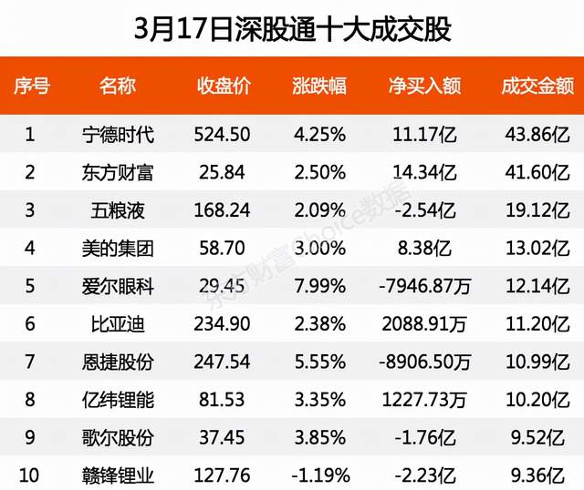 3月17日,北向资金当日成交净买额为53.65亿元。其中,沪股通当日成交净买额为4.92亿元;深股通当日成交净买额为48.74亿元。