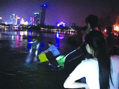 有市民张网捕鱼。李海勇 摄 前天晚上,由于南京天气闷热,玄武湖内不少鱼儿因为缺氧纷纷跃出水面“透气”,而在南京火车站附近的玄武湖畔,更是聚集了几十位市民,大家拿着各种工具上演了一场抢鱼大战,而且这场抢鱼大战一直上演到昨日凌晨1点方才结束。