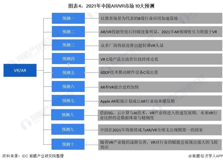 同时,IDC对2021年中国AR/VR市场10大预测信息显示,K12、高教、职教以及各类培训场景中,VR头显和解决方案已经在发挥不可替代的作用:丰富教学手段,弥补场景缺失,规避不可控风险。各大厂商深耕教育市场脚步加快,以教育场景为代表的B端行业应用将加速落地。