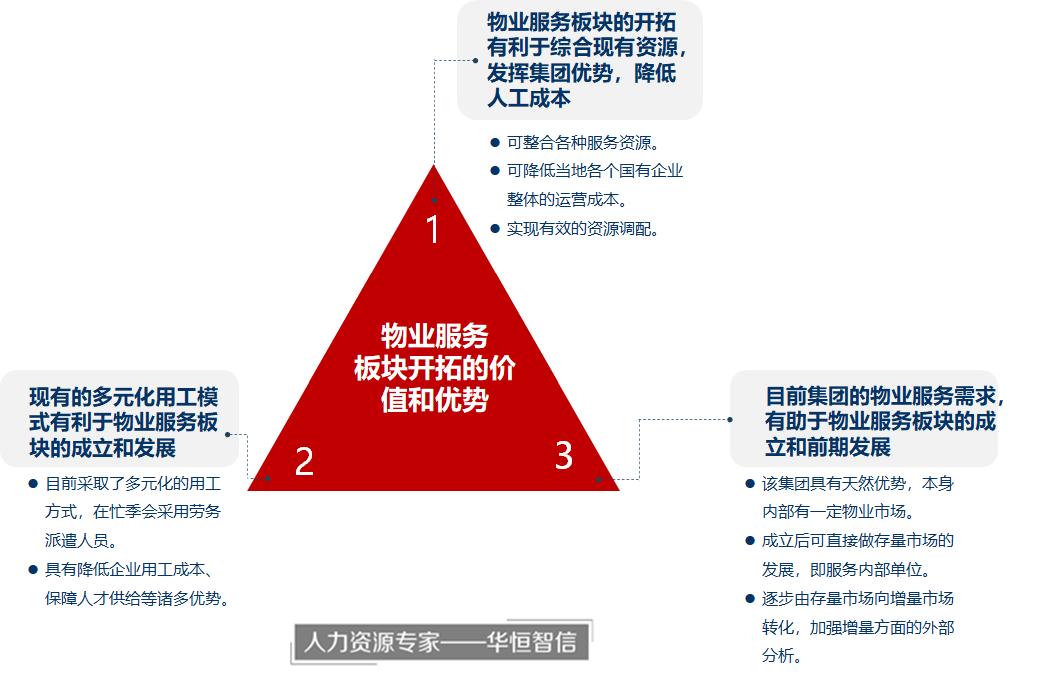 华恒智信项目组对该公司的实际情况进行了深入调研,立足于企业发展现状,针对其物业服务板块规划的价值和优势进行了判断分析: