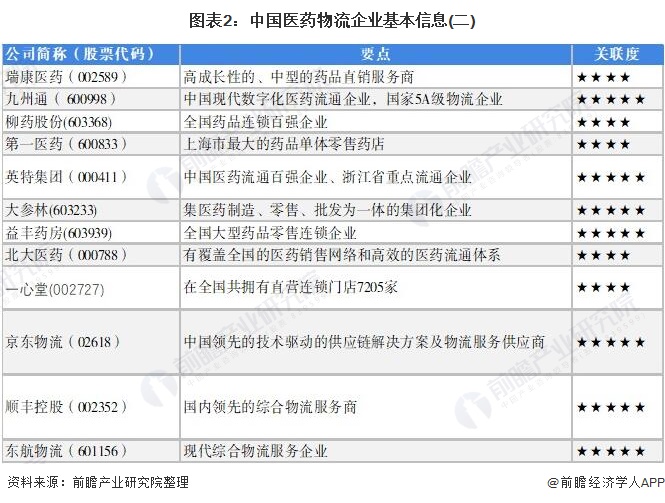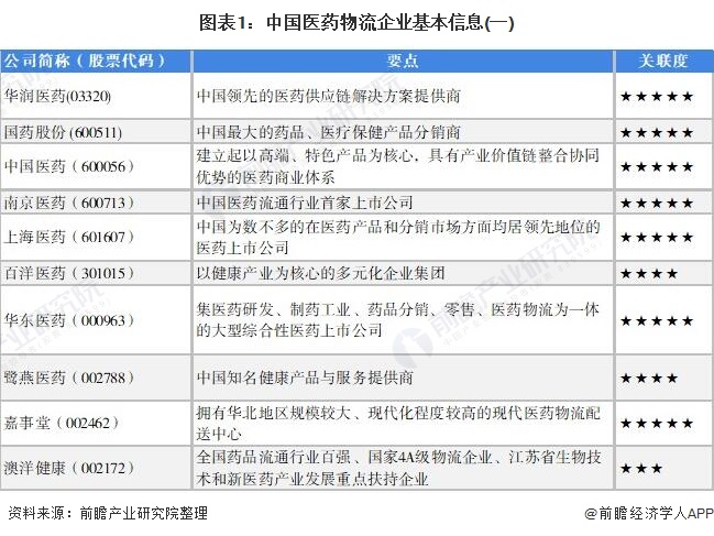 医药物流主要上市公司:目前国内医药物流行业的上市公司主要有:国药股份(600511),九州通(600998),上海医药(601607),嘉事堂(002462),瑞康医药(002589),南京医药(600713)等。