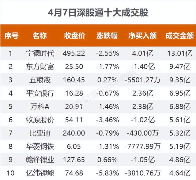 4月7日,北向资金当日成交净买额为-6.09亿元。其中,沪股通当日成交净买额为6.38亿元;深股通当日成交净买额为-12.47亿元。