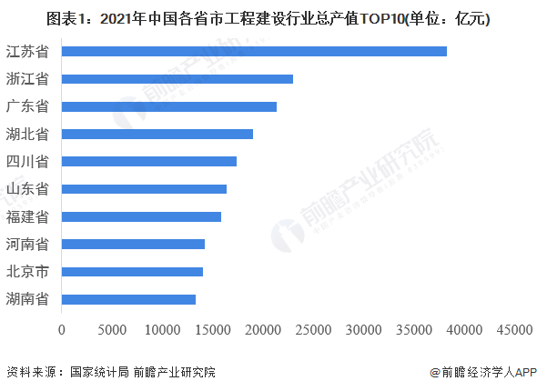 以上数据参考前瞻产业研究院《中国工程建设行业市场前瞻与投资战略规划分析报告》,同时前瞻产业研究院还提供产业大数据、产业研究、产业链咨询、产业图谱、产业规划、园区规划、产业招商引资、IPO募投可研、IPO业务与技术撰写、IPO工作底稿咨询等解决方案。