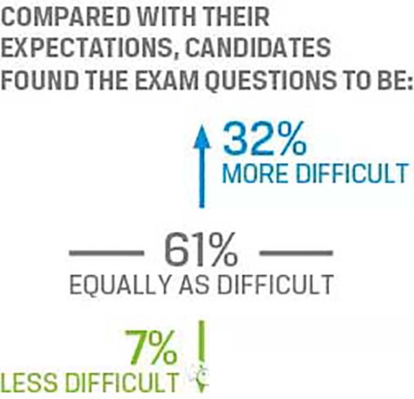 ✔ 61%的考生认为CFA考试的难度在自己预测的范围内;