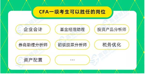 投资产品分析师、基金经理助理、企业会计、资产配置、税务优化、初级股票分析师、券商助理分析师等等。