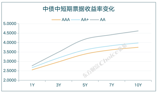 中债5年中短期票据(AAA)收益率报3.3920%,上行0.52BP;中债5年城投债(AAA)收益率报3.4060%,下行0.51BP。